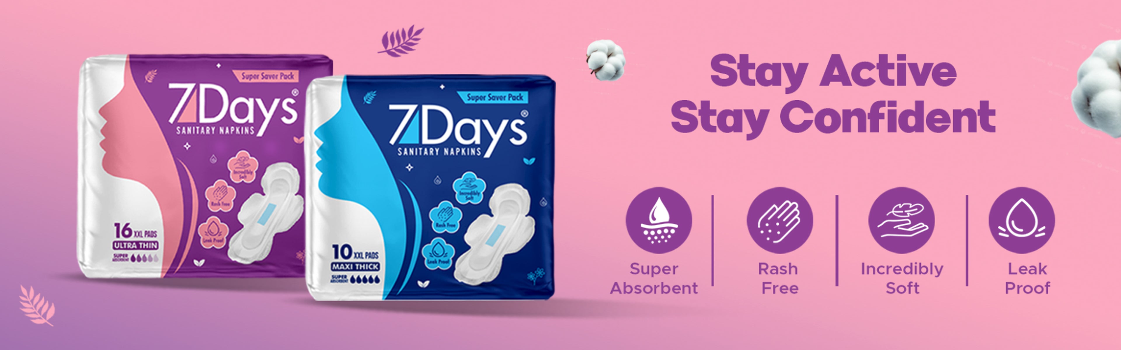 7Days Sanitary Napkins – Size – XXL, Ultra Thin – 16 Pcs (Pack of 2)